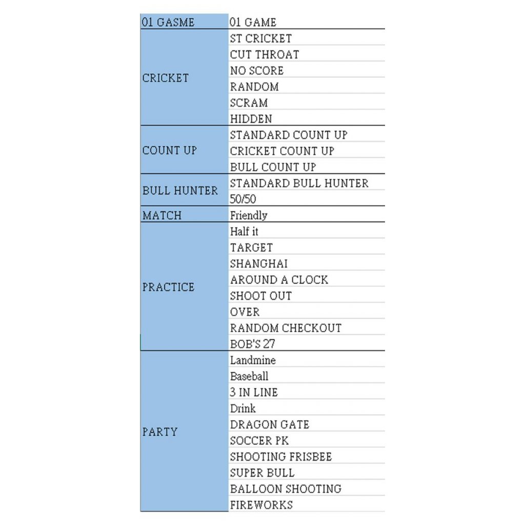 - Dodává se s: 12 plastovými hroty, 6 šipkami, měřící páskou a odhodovou čárou