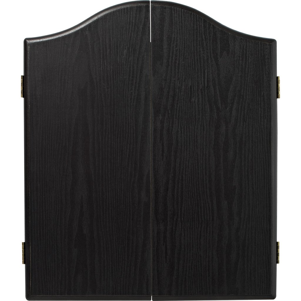 Kvalitní odýhovaná černá skříňka s terčem Winmau Diamond Plus, odhodovou čárou a dvěma sety šipek.