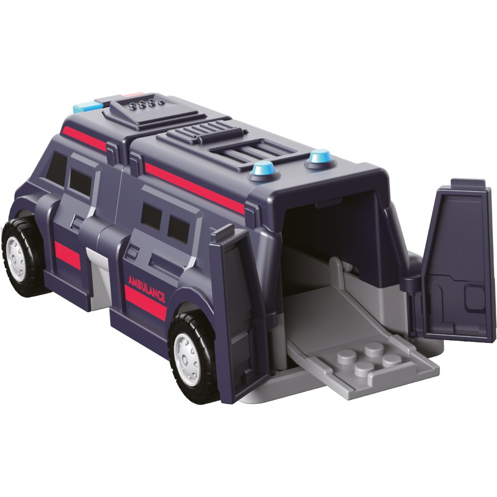 Dva díly obsahují setrvačník, takže auta můžou sami jezdit. Do popelářského auta můžete vyklápět popelnici a do sanitního vozidla lze na lůžko umístit figurku !