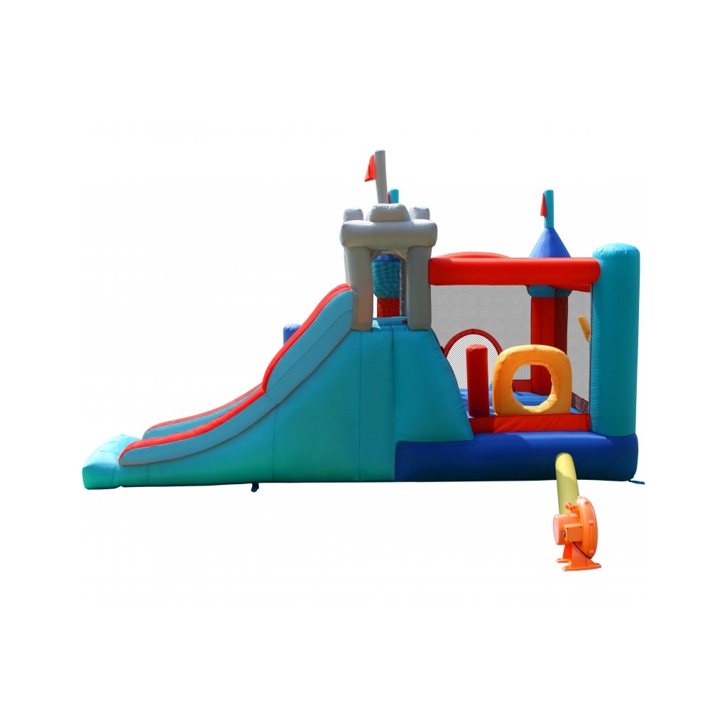 Velice atraktivní hrad nabízí skákací plochu, velkou a malou skluzavku.