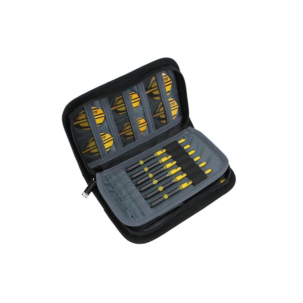 - Vysoce kvalitní pouzdro má 17 oddílů, kde kromě 2 sad šipek můžete uložit i další příslušenství.