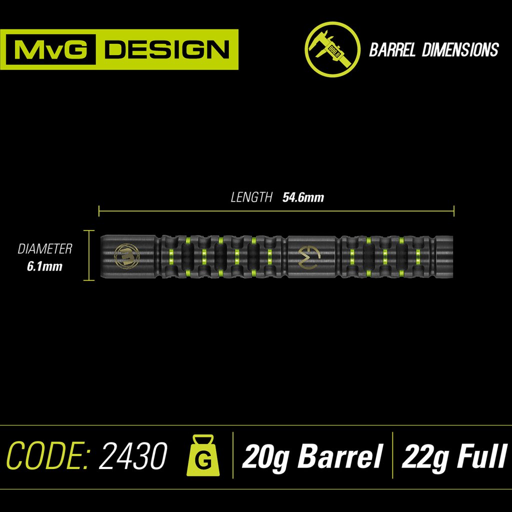 Tento model MvG Adrenalin Design, který má fascinující PVD Onyx s kovovými zelenými detaily, navržený tak, aby design a kvalita dovedli tyto šipky k vítězství.